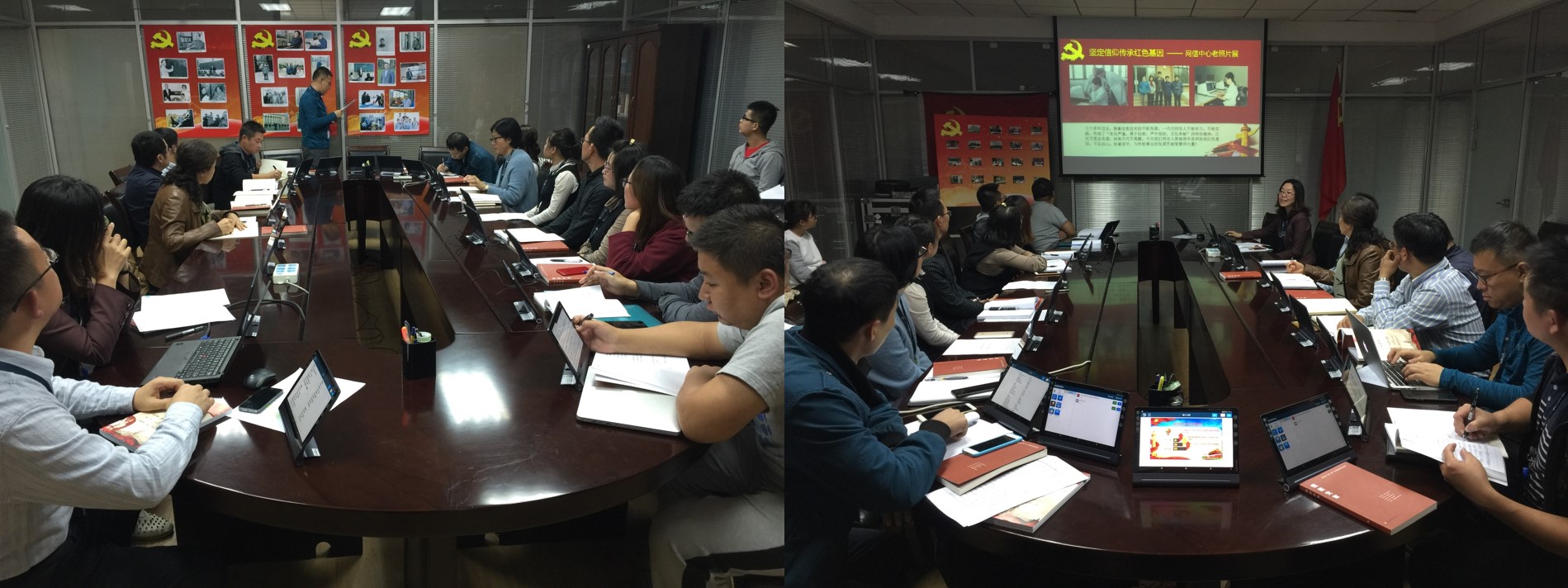 10月18日,为扎实推进“两学一做”学习教育常态化制度化,增强基层党组织的凝聚力和战斗力,网信中心党支部联合体教部运动人体科学教工党支部和化环生学部工业催化硕第一学生党支部举行了主题为“坚定信仰 不忘初心 共筑中国梦”的“1+1”共建党日活动,机关党委书记王涌涛老师受邀参加了此次活动。此次党日活动共有四大板块内容,分别是结合十九大召开介绍党新时期历次全国代表大会的理论贡献和创新历程;学习《悦读党章》第二章;理想信念图片展;集体诗朗诵“信仰的力量”,活动由网信中心党支部书记翟鸣宇主持。