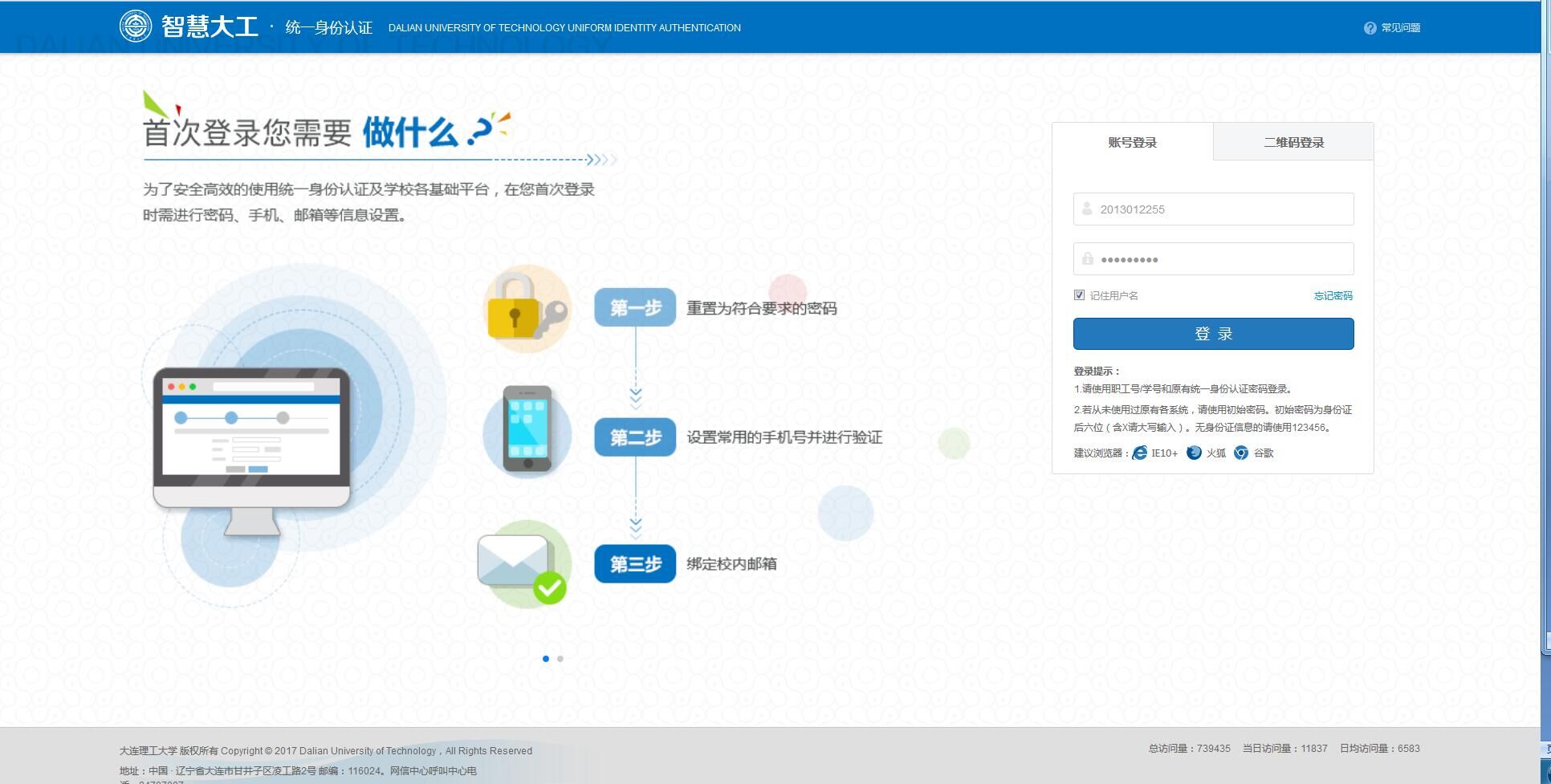 教师个人主页系统面向全校教职工提供服务,教职工可以通过教师个人主页主界面(http://faculty.dlut.edu.cn)的登陆入口或者校园综合门户,使用校园综合服务门户统一身份认证账号登陆到教师个人主页管理平台,直接开通个人主页,并对个人数据进行编辑,无需审批。