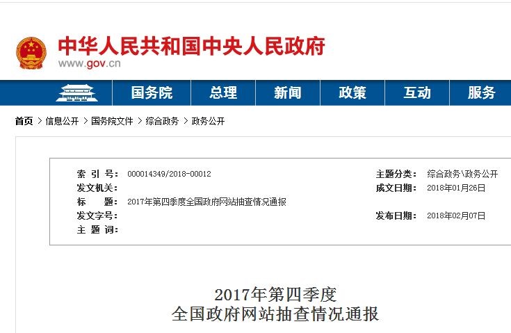 2月7日,国务院办公厅秘书局发布2017年第四季度全国政府网站抽查情况通报