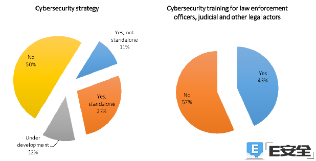 报告指出,约38%的国家发布了国家安全战略,只有11%制定了专门的独立战略,另有12%的国家正在制定网络安全战略。43%的国家具有执法和司法系统的能力构建计划。