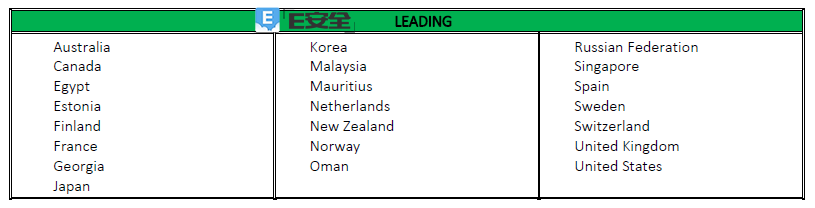 报告数据显示,排名前十的国家包括新加坡、美国、马来西亚、阿曼、爱沙尼亚、毛里求斯、澳大利亚、格鲁吉亚和法国(并列排名第8)、加拿大、俄罗斯。日本和挪威并列排名第11,韩国排名第13,以色列排名第20、泰国第22,印度第23,德国第24,中国第32。